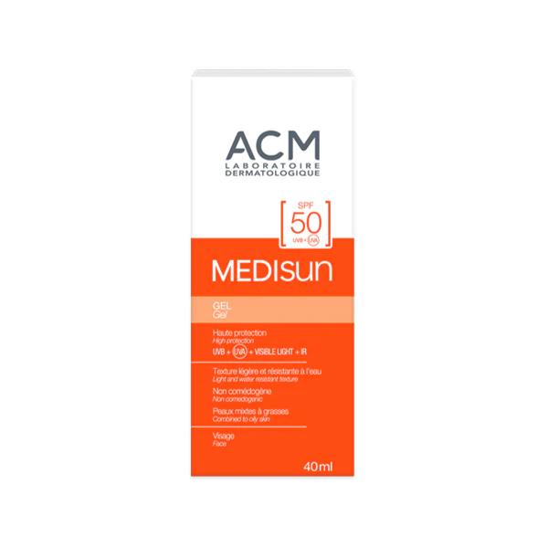 "ACM Medisane جل واقي شمس للوجه SPF50+ بتركيبة مات مناسبة للبشرة الدهنية، حماية عالية من أشعة UVA/UVB مع لمسة نهائية خالية من اللمعان."