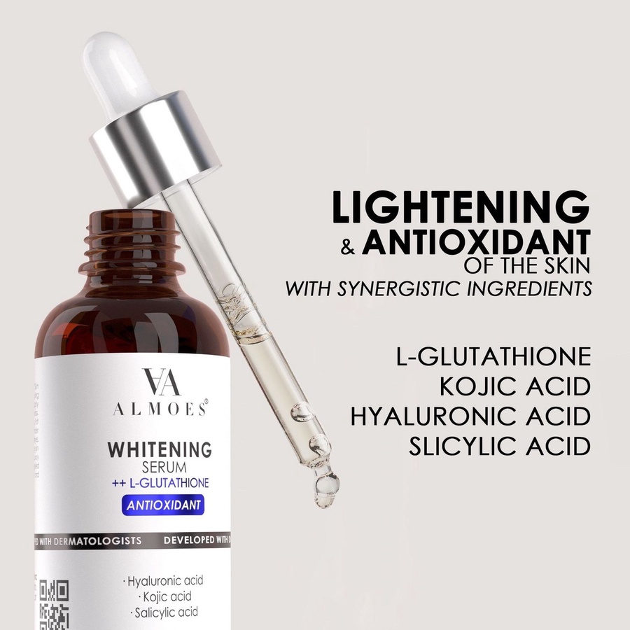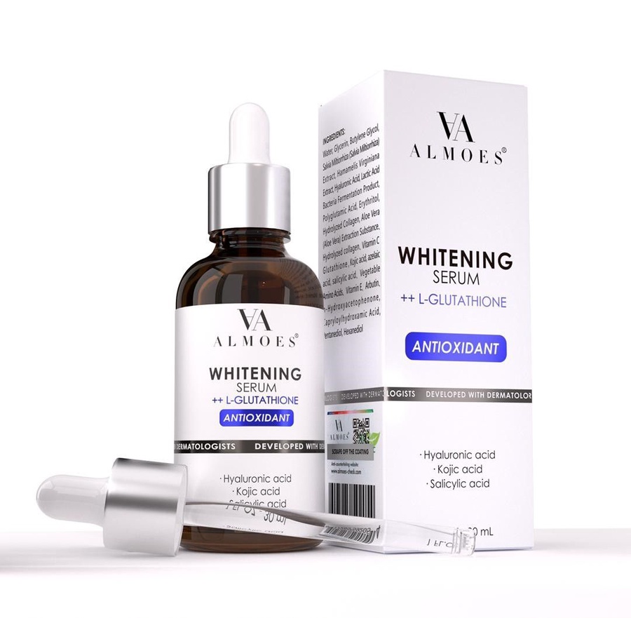 سيروم ALMOES بالجلوتاثيون لتبييض وتفتيح البشرة، يوحّد اللون، يقلل التصبغات والبقع الداكنة، ويمنحك نضارة وإشراقة واضحة مع الاستخدام المنتظم .