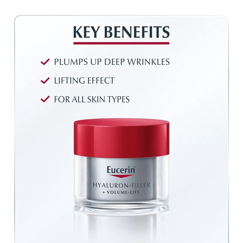 استعيدي حجم بشرتك مع كريم يوسرين هيالورون فيلر + فيلوم ليفت الليلي. يملأ التجاعيد العميقة، يشد ملامح الوجه، ويجدد البشرة أثناء النوم بتركيبة الهيالورونيك.