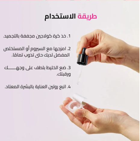 كيفية الاستخدام: امزجي كرة واحدة مع السيروم المائي المفضل لديكِ وضعيه على الوجه. شاهدي بشرتك تتجدد وتستعيد مرونتها!