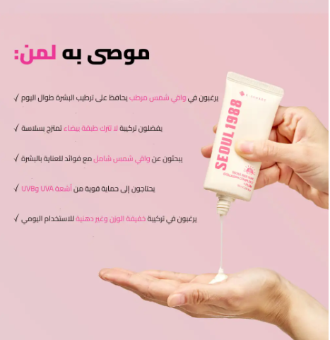 احمي بشرتك بـ واقي شمس سيول 1988 الكوري. تركيبة غنية بخشب الصنوبر والسيراميد لترطيب عميق وحماية SPF50+ من الأشعة والضوء الأزرق. اطلبه الآن لبشرة صحية ومشرقة!