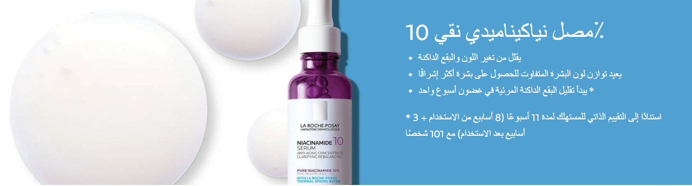 سيروم لاروش بوزيه بيور نياسيناميد 10 لعلاج البقع الداكنة وتوحيد لون البشرة. تركيبة فعالة تمنحك بشرة نضرة ومشرقة في أسبوع واحد. مناسب للبشرة الحساسة