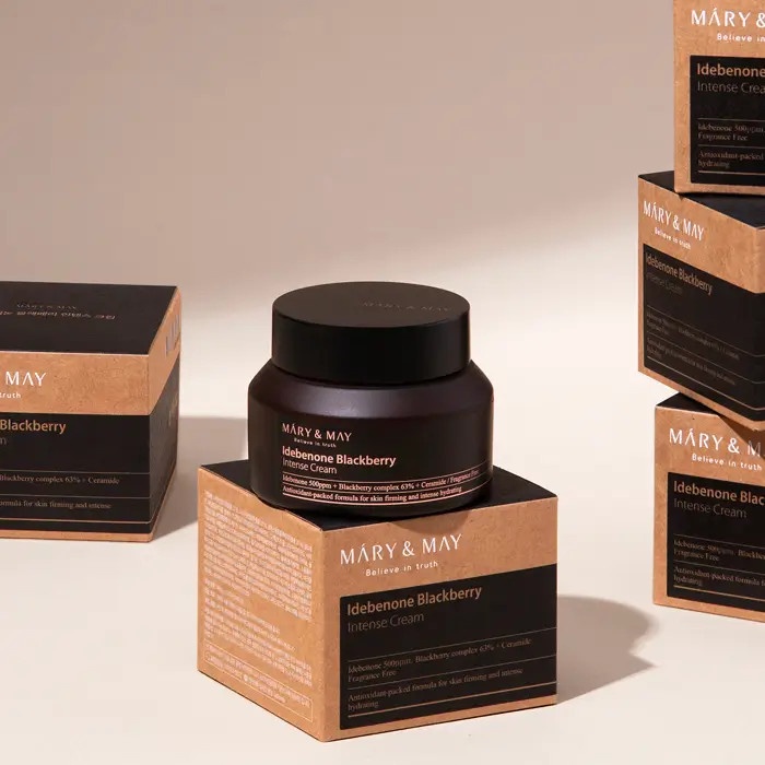 كريم Mary&May Blackberry Intense Cream غني بمستخلص التوت الأسود + Idebenone (واحد من أقوى مضادات الأكسدة)، يشتغل على شد البشرة، تقليل التجاعيد، تحسين المرونة، ويعطيك بشرة ممتلئة ومشرقة كأنها شربت باور بنك 🔋😌