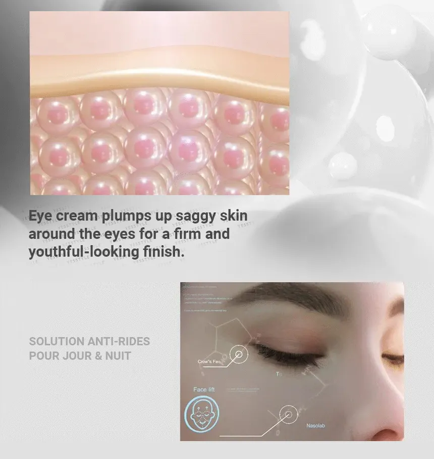 بفضل تقنية الببتيدات التسعة المتطورة، يعمل هذا الكريم على ملء الخطوط الدقيقة ورفع الجفون المترهلة بشكل ملحوظ، بينما يقوم الكافيار والخلايا الجذعية بتغذية البشرة بعمق لتختفي الهالات السوداء وعلامات الإجهاد.