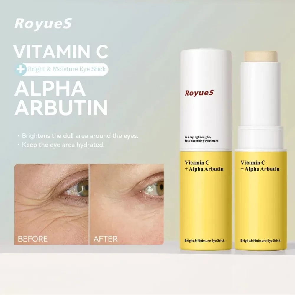 استعيدي نضارة عينيك مع قلم RoyueS بفيتامين C وألفا أربوتين. يفتح الهالات السوداء، يقلل الانتفاخات، ويمنحك ترطيباً فورياً ونعومة فائقة. اطلبيه الآن لعيون مشرقة!