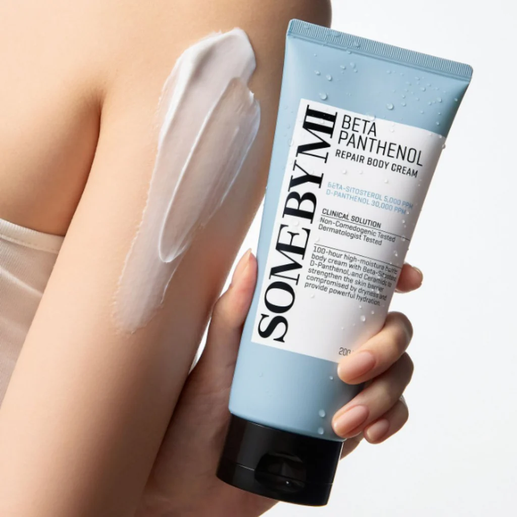 دللي بشرتك مع كريم الجسم SOME BY MI Beta Panthenol Repair الغني بمزيج فريد من البانثينول وبيتاين، المصمم خصيصًا لترميم وتهدئة البشرة المتضررة والجافة. يتميز بتركيبة مبتكرة تعمل على تقوية الحاجز الواقي للبشرة وتمنحها ترطيبًا عميقًا يدوم طويلاً دون أن يترك ملمسًا دهنيًا.
