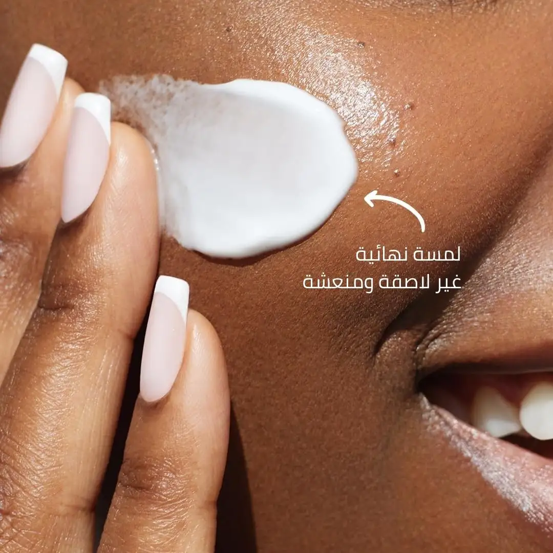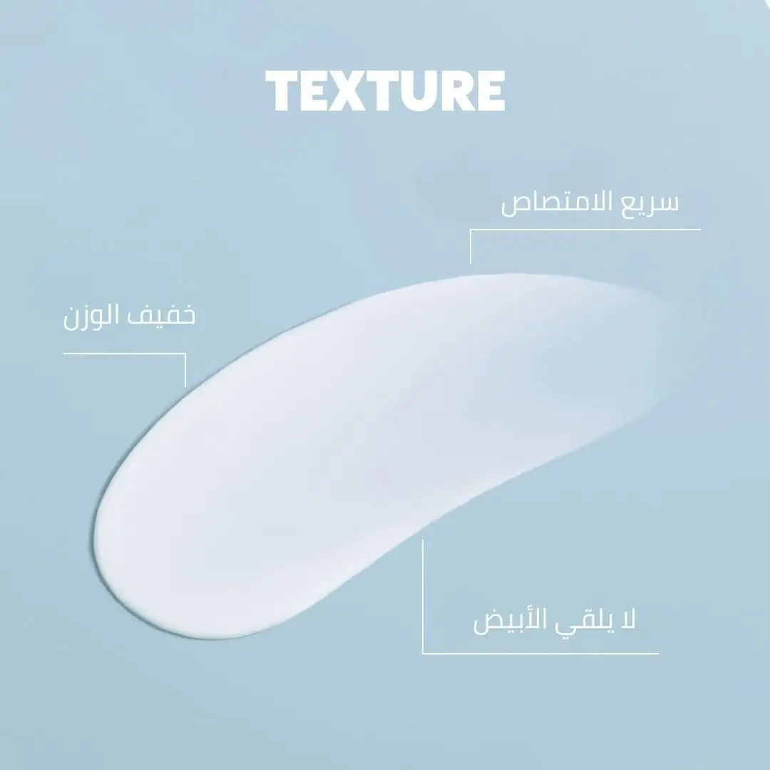 خفيف كالماء: ينساب على البشرة كالسيروم، يمتص في ثوانٍ، ولا يترك أي أثر أبيض أو ملمس لزج.