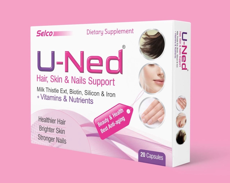 مكمل U-Ned للشعر والبشرة والأظافر بتركيبة غنية بالبيوتين والزنك والفيتامينات لدعم النمو، تقوية الأظافر وتحسين نضارة البشرة.