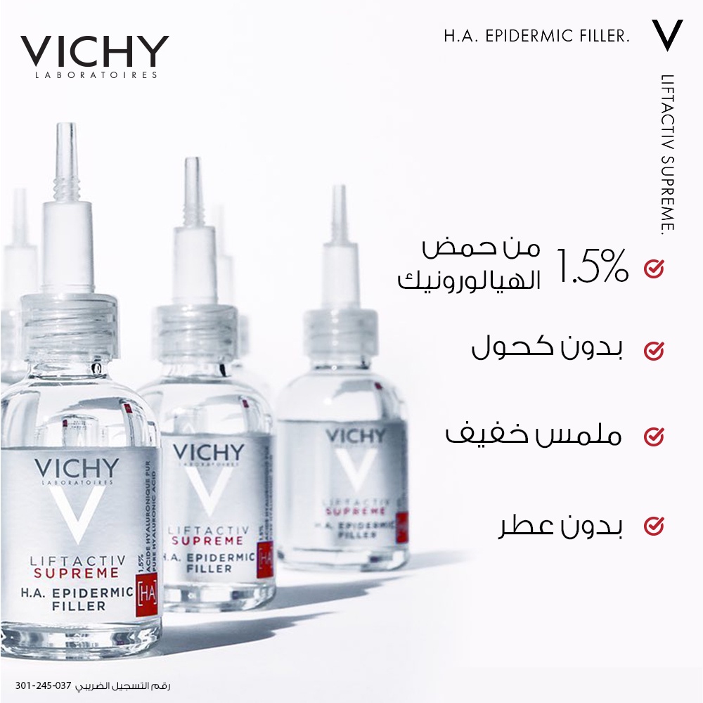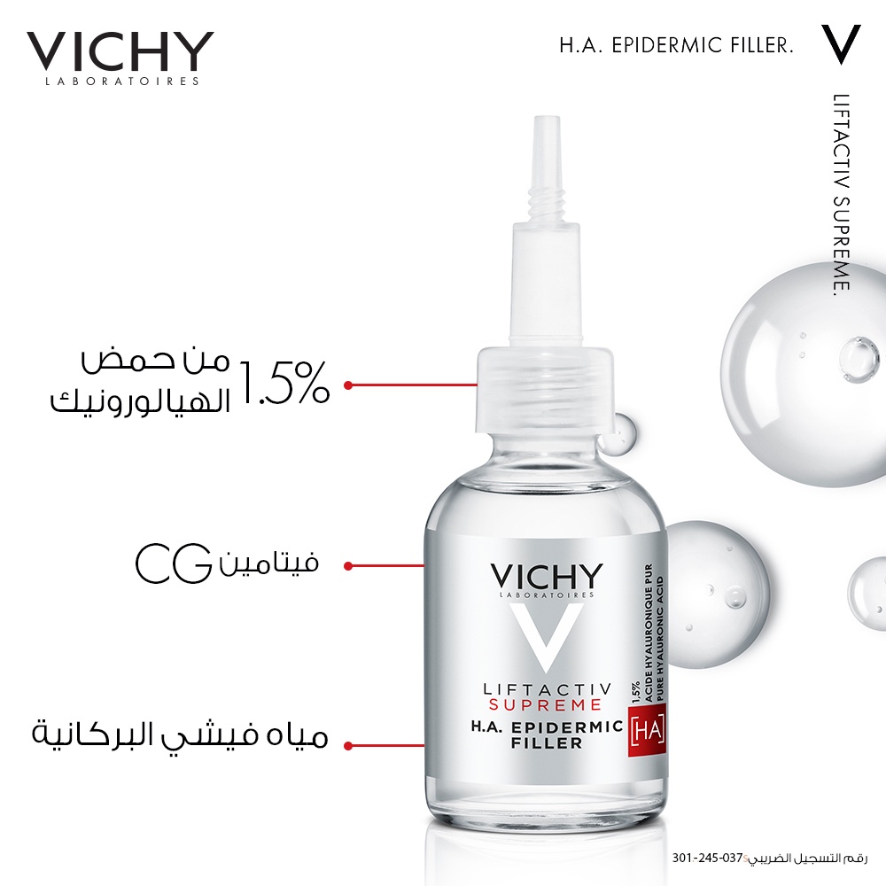 هل بدأتِ تلاحظين فقدان بشرتكِ لمرونتها؟ هل تبحثين عن بديل آمن وفعال لإبر الفيلر؟ في هيلث بوينت، نعلم أن سر ثقتكِ يبدأ من بشرة ممتلئة ومشرقة، لذا قدمنا لكِ Vichy Liftactiv Supreme H.A. Filler. هذا السيروم ليس مجرد مرطب، بل هو ثورة علمية تعوض 100% من فقدان حمض الهيالورونيك اليومي في البشرة. بقطرات قليلة، ستشعرين بأن بشرتكِ "ارتوت" واستعادت كثافتها التي فقدتها السنون.