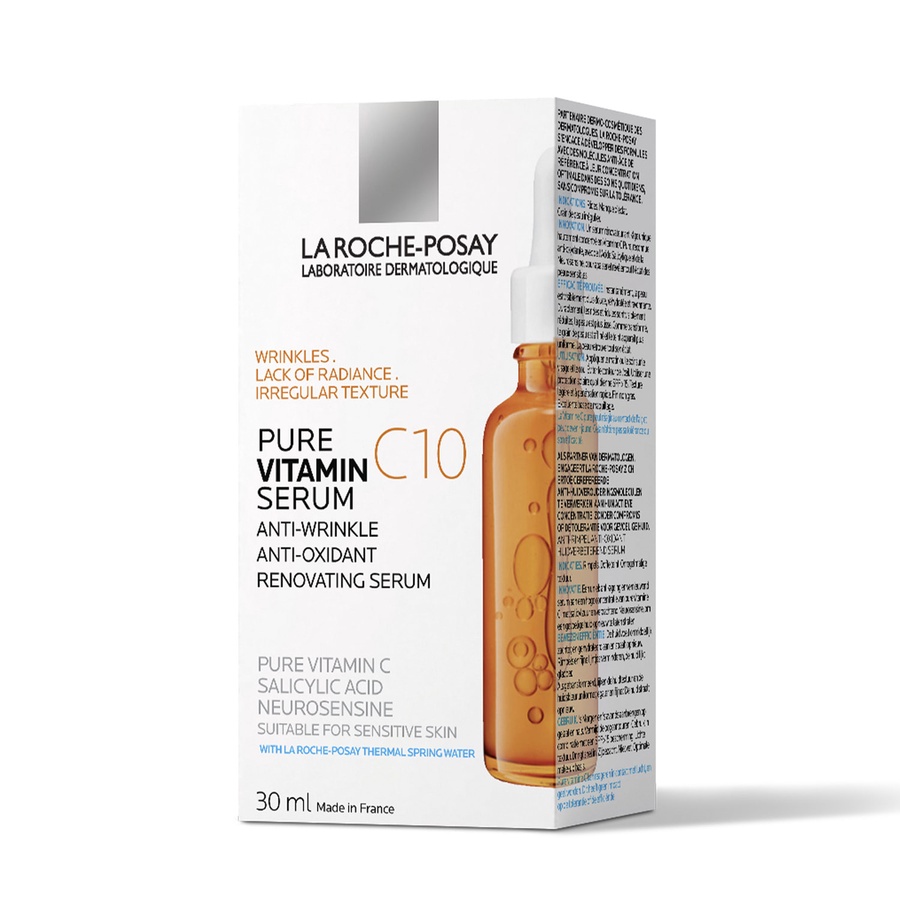 سيروم مضاد للأكسدة بتركيبة غنية بفيتامين C النقي بتركيز 10%، يساعد على تفتيح البشرة واستعادة إشراقتها الطبيعية. يقلل مظهر الخطوط الدقيقة والتجاعيد، ويمنح ملمس ناعم ومشرق للبشرة. يحتوي على حمض الساليسيليك لتهذيب الملمس، ومياه لاروش بوزيه الحرارية لتهدئة البشرة وتقليل الحساسية.
